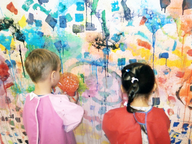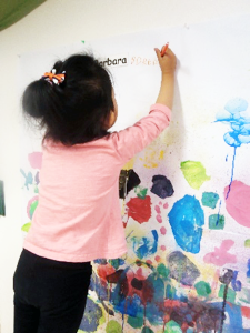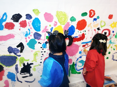 The children loved the discussions that went with it and patiently placed their Lego pieces guided by one another and the plan. With our large art project, we covered an entire wall with paper from floor to above the height of the teachers. We observed many social interactions that gave rise to incredible creativity; children worked for a long-time painting, stamping, blowing bubbles etc. and the project was extended to more than three weeks.