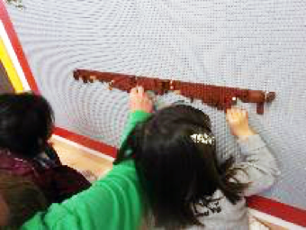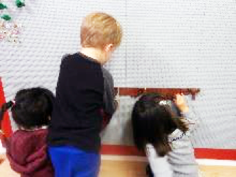 We used to have a Lego wall and we still have vertical painting and drawing.
